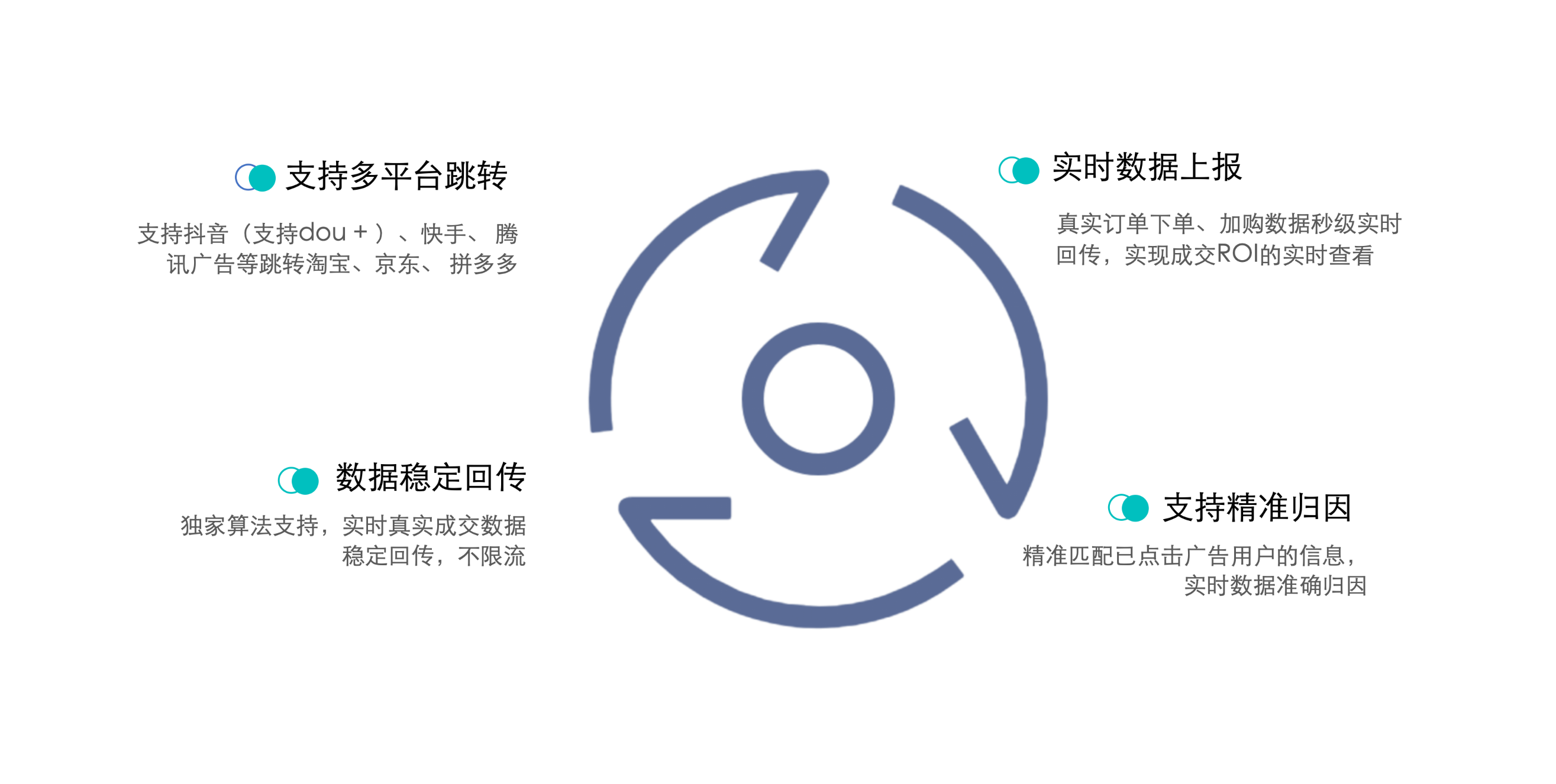 壹定发智能CID解决方案支持定制OCPX下发策略,校准媒体模型训练算法。同时也支持多平台跳转、实时数据上报、数据稳定回传、支持精准归因。